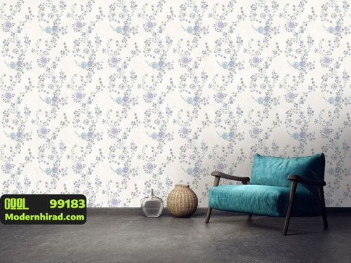 کاغذدیواری گلدار بنفش و آبی با گل ریز و درشت 99183