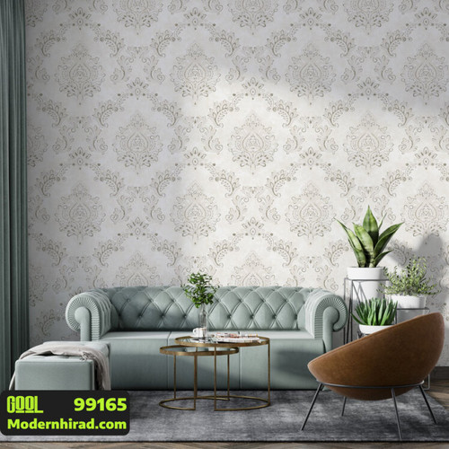 کاغذدیواری طوسی با داماسک دایره ای طوسی طلایی 9997