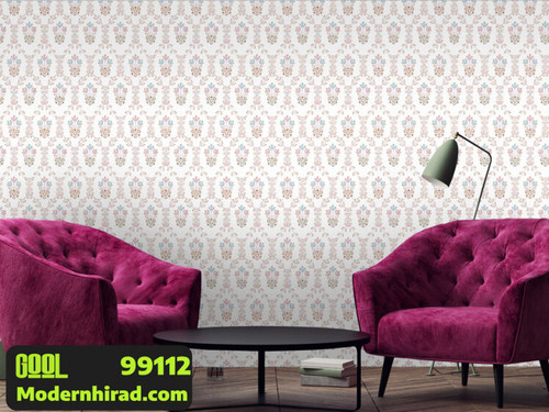 کاغذدیواری طرح پتینه صورتی با زمینه سفید کرم 99147