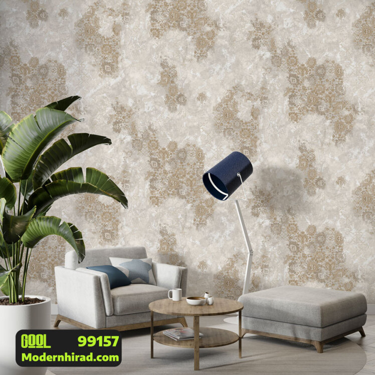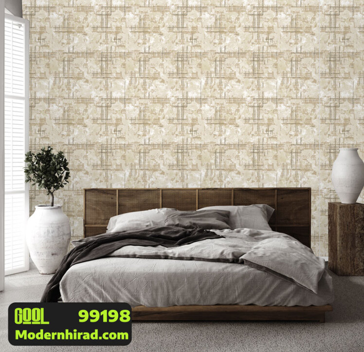 کاغذدیواری کرم قهوه ای طرح مدرن با شاین طلایی 99198