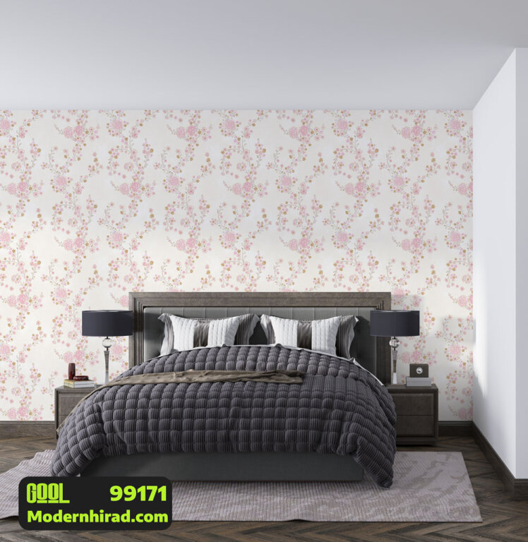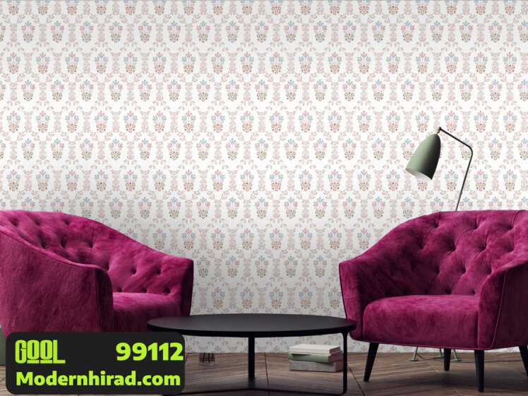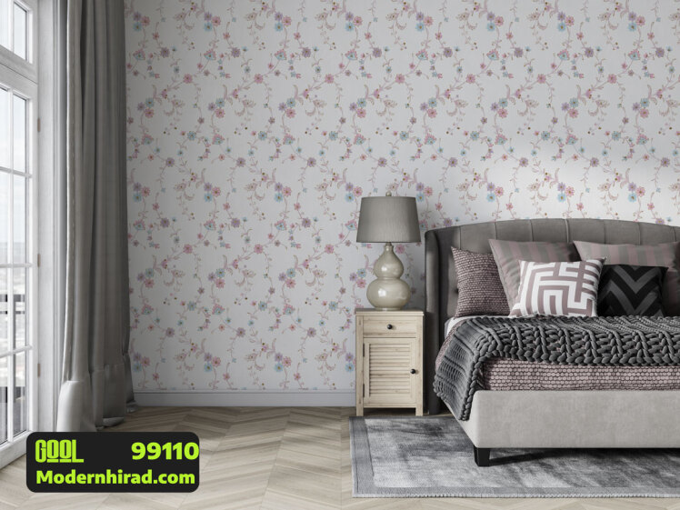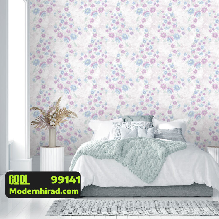 کاغذدیواری طرح گل آبی و صورتی با شاین نقره ای 99110