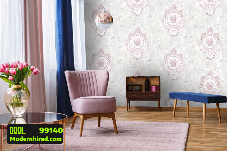 کاغذدیواری آبی و صورتی طرح داماسک 99112