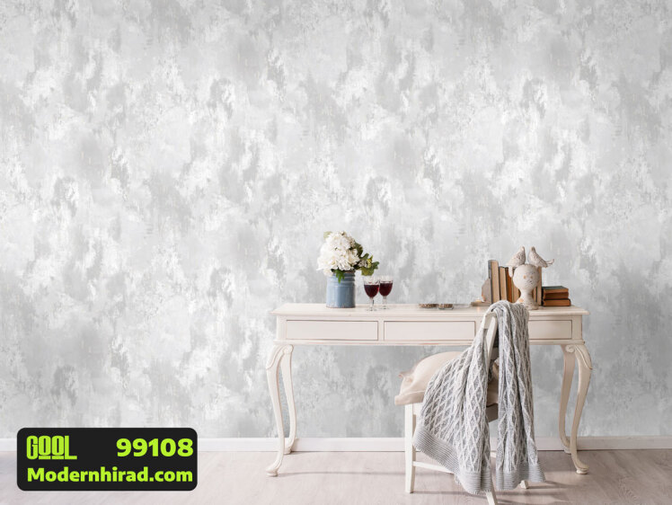 کاغذدیواری طوسی پتینه با رگه های سفید 99108