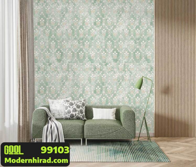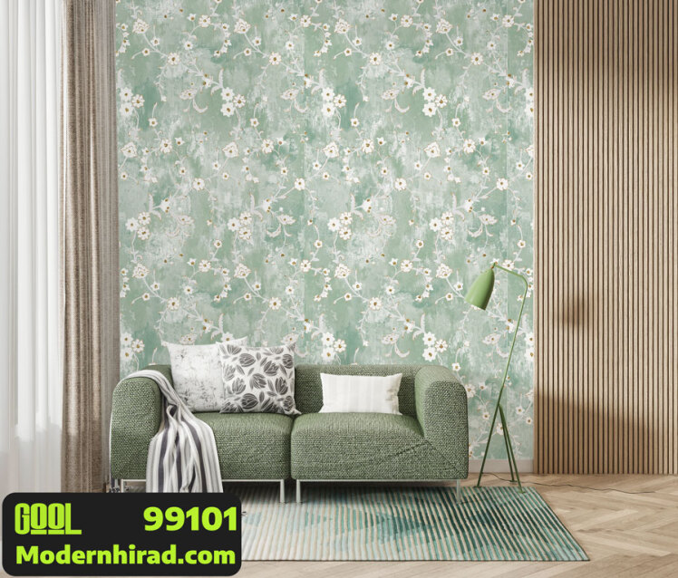 کاغذدیواری سبز طرح گل با شاین طلایی 99101