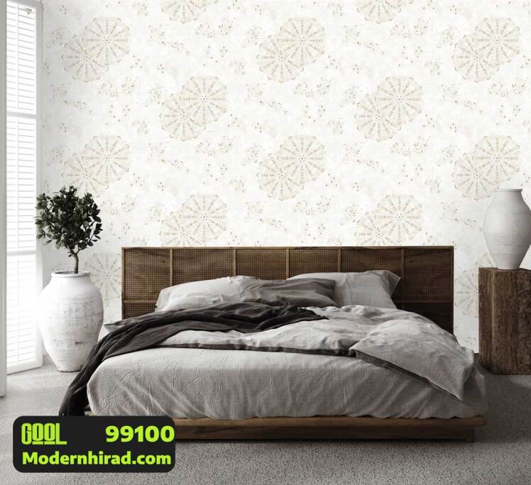 کاغذدیواری سفید کرم طرح پتینه 99111