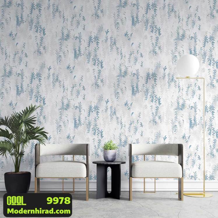 کاغذدیواری طرح گل ریز آبی با شاین نقره ای 99184